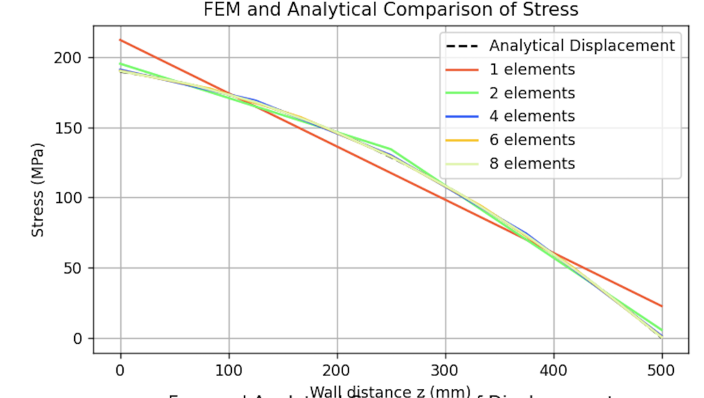 • Performed convergence study to identify optimal number of elements, and conducted a normalized RMSE comparison between analytical and FEM solutions, visualizing results on Python