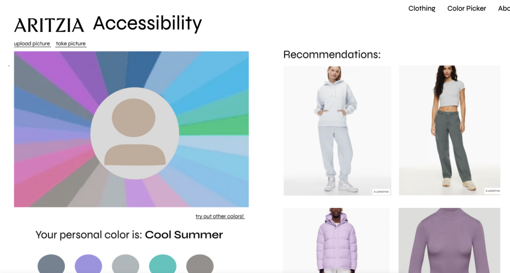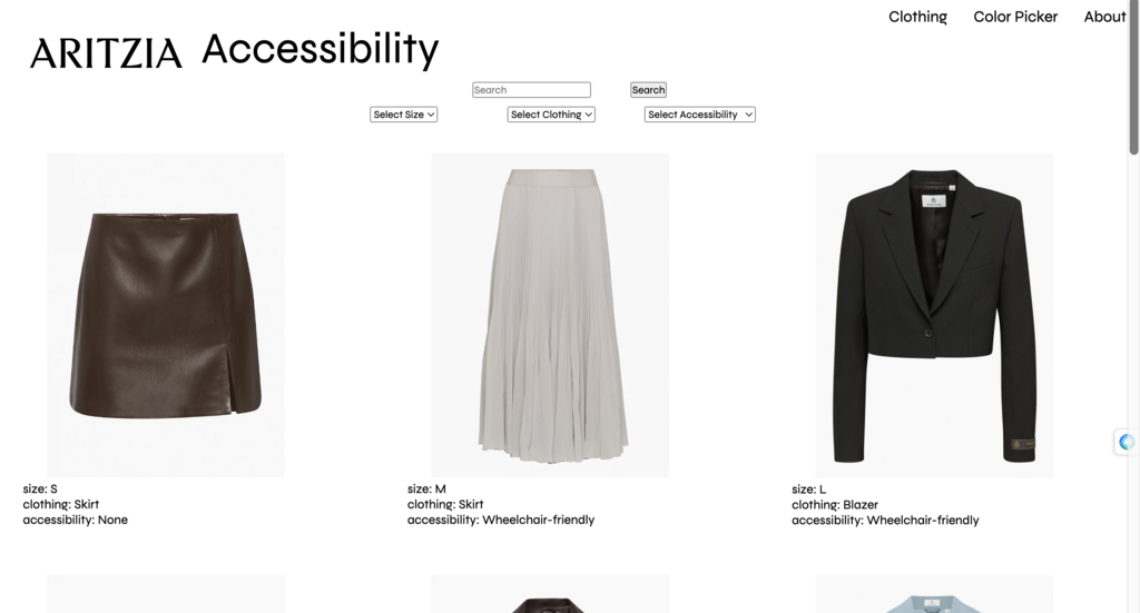 What's next for Aritzia Accessibility: Create more filters, add the entirety of Aritzia's clothing line, and implement a fully functional color picker.